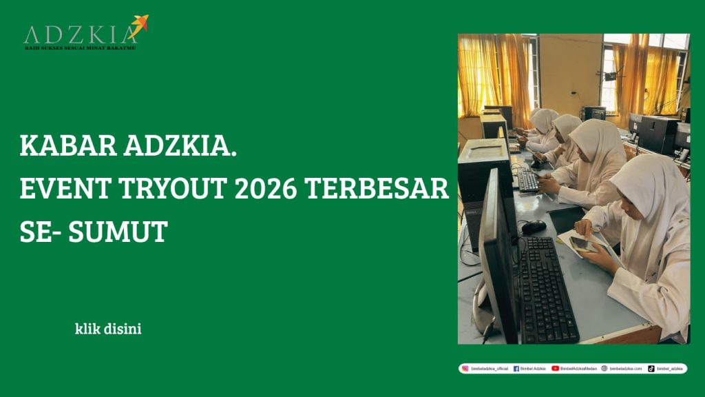 Medan, Bimbel Adzkia- Di awal tahun lalu Adzkia kembali membuka awal baru dengan mempersembahkan program bertajuk grand tryout utbk 2026. Kali ini bimbel Adzkia kembali menggandeng KEMENAG Sumut sebagai mitra dalam mencakup para petarung, para pejuang, dan calon penerus pendidikan PTN. Dalam hal ini, Madrasah Aliyah (MA) yang akan menjadi fokus utama Bimbel Adzkia serta